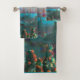 I ordered these towels because I am getting ready to stage my house for sale and wanted some really pretty towels to show off the bathroom. These are an absolutely perfect match for the teal walls and I could not be more pleased. Not only do they look beautiful, they also seem to be very good quality. They are different than any other towels I've had, as the surface fibers are not looped. I love that because I have never liked how most towels have loops that snag and pull no matter how careful you are. I pre-washed them and they came out beautifully. The towels are generously sized and they don't feel flimsy at all. I did not read the description well enough to understand I was paying as much as I was paying for just exactly what was pictured: not a set of two, but a single towel, hand towel and washcloth, so they are way more expensive than I thought (which was a lot, considering). However, I still love them enough that I went ahead and ordered a single additional bath towel so that I would have an actual set, but will need to buy a couple of solid color washcloths. Pricing is weird, because a single wash cloth is priced higher than a large bath towel?? Anyway, if you can afford them, these towels are fantastic. I would never pay this much except to show off a house for sale, but now that I've done it I will love them in my new home as well. Gorgeous! Vibrant Colors and exactly as pictured,..maybe evern better!