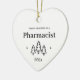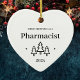 First Christmas as a pharmacist heart ornament for a new job. Elegant porcelain ceramic holiday ornaments in white with black lettering. Featuring Christmas trees and stars.