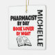 This is a unique ornament featuring the quote "Pharmacist by Day Book Lover by Night", perfect for any pharmacist in that loves to read.