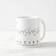 Pharmacist spelled out in amino acids as P H A R M A C I S T (Proline Histidine Alanine Arginine Methionine Alanine Cysteine Isoleucine Serine Threonine) on a mug for the scientist in you.