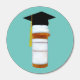 Pharmacy school graduation party favors for pharmacist graduate featuring prescription bottle with a black and gold grad cap.