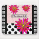 Pharmacist Whimsical Pink and Orange flowers and pharmacist abbreviations background with black and white polka dots. Artsy and unique gifts for pharmacists.