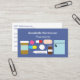 This colorful eye-catching business card features clean and simple style illustration of pharmaceutical products including pills, tablet, a pill bottle, a syringe and a prescription pad against a periwinkle blue background with your name and title at the top. The reverse side has coordinating periwinkle colored lettering against a white background. This modern style business card is perfect for pharmaceutical industry professionals including pharmacies, pharmacists, drug company reps and more.