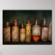 You have a little bit of everything here. From Antiseptic rum, to curling fluid. Fix the curl in your hair, or fix cramps and burns. Looking for POSTERS of this or any of these designs?