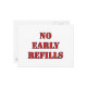 This design features a sign that says "No Early Refills" to help pharmacists and pharmacy technicians explain that early prescription refills are out of the question.