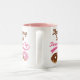 Cute pink and white gift mug for the Pharmacy Tech with powered by donuts quote.