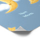 This chart shows 9 phases of the moon from waxing to full moon and ending in old moon surrounded by fluffy clouds and stars. Both moon and stars in this illustration are made of yellow cheese with holes for added charm.
