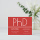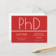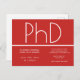 A postcard invitation for a PhD graduation party. This minimalist invitation is red and white. All the words can be customized.