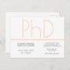 A postcard invitation for a PhD graduation party. This minimalist invitation is white, cream, and gray. All the words can be customized.