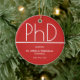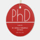 Keepsake ornament for a PhD graduation party with a red and white design. This item is part of a graduation party collection that includes an invitation, photo announcement, paper napkins, place cards, and more. Customize these items, add them to your cart, and celebrate this major achievement.