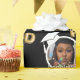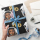 PhD Grad Photo Graduation Wrapping Paper with personalized photo of your graduate, graduation cap, gold foil style balloons spell the word PHD and customize with your grad's name.