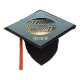 This product is a hat / mortarboard topper for a successful PhD graduate. It is a nice gift from colleagues at the PhD defense. The elegant design features a golden disco ball with the word PhD on a teal grey background and personalizable texts phrases.