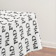A graduation tablecloth with a pattern of the word PhD in black on a white background.