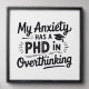 A humorous and very relatable typography design for anyone who's a master of overthinking! This design features the quote: "My Anxiety has a PhD in Overthinking" with a graduation cap graphic. It's a fun way to acknowledge the struggle with anxiety and excessive thought. Perfect for t-shirts, mugs, posters, or as a gift for students and professional worriers.