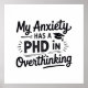 A humorous and very relatable typography design for anyone who's a master of overthinking! This design features the quote: "My Anxiety has a PhD in Overthinking" with a graduation cap graphic. It's a fun way to acknowledge the struggle with anxiety and excessive thought. Perfect for t-shirts, mugs, posters, or as a gift for students and professional worriers.