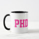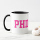 A personalized mug with PhD written in pink. Great gift for new PhDs.