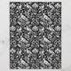 Paper in a William Morris, Art Nouveau wallpaper design of pheasants and hares set among leaves, vines and flowers in white on a black background