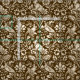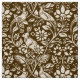 Fabric in a William Morris, Art Nouveau wallpaper design of pheasants and hares set among leaves, vines and flowers - beige on a chocolate brown background