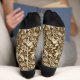 Socks in a William Morris, Art Nouveau wallpaper design of pheasants and hares set among leaves, vines and flowers - beige on a chocolate brown background