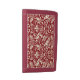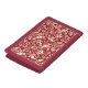 Wallet in a William Morris, Art Nouveau wallpaper design of pheasants and hares set among leaves, vines and flowers - cream / winter white on a deep Chinese red background
