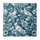 Ceramic tile in a continuous tiling pattern - William Morris, Art Nouveau wallpaper design of pheasants and hares set among leaves, vines and flowers - subtly textured white on an indigo / denim blue background