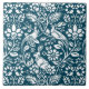 Large Ceramic tile in a William Morris, Art Nouveau wallpaper design of pheasants and hares set among leaves, vines and flowers - subtly textured white on an indigo / denim blue background