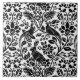 Large Ceramic tile in a William Morris, Art Nouveau wallpaper design of pheasants and hares set among leaves, vines and flowers - Black on a subtly textured white background