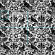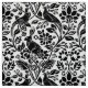 Fabric in a William Morris, Art Nouveau wallpaper design of pheasants and hares set among leaves, vines and flowers - Black on a subtly textured white background