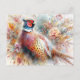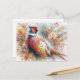Send a note of seasonal beauty with this autumn pheasant postcard, featuring a watercolor-style illustration of a pheasant surrounded by delicate fall leaves, flowers, and berries. The vibrant plumage of the pheasant is rendered in warm shades of red, gold, and copper, blending beautifully with the soft autumn foliage for a design that feels both rustic and elegant.