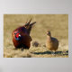 A male Pheasant is trying to get the female's attention. Walking beside her showing off his colors. Is the female going to give in to his charms?