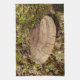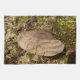 Phellinus igniarius mushroom, growing on a moss covered fallen oak tree, showing cracked cap