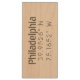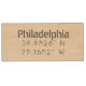 Philadelphia Pennsylvania longitude and latitude map coordinates in distressed fonts give this a modern urban look