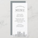 A set of personalized food menus for your next wedding-themed event in the beautiful city of Philadelphia, Pennsylvania. It features a deco-styled illustration of the city skyline. Above this, are spots for your unique menu selection. On the reverse side is a soft nickel gray color with a space for your own unique message to thank your wedding guests. These menus would make a great accent for your rehearsal dinner, engagement party, or wedding reception dinner.