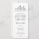 A deco skyline-themed wedding program for a wedding taking place in the beautiful city of Philadelphia, Pennsylvania. This item features a stylized illustration of the city's unique skyline with its name underneath. This is followed by your wedding day information in a matching open-lined style.