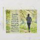 Lovely inspirational quote custom postcard depicts a girl running on a beautiful scenic path and features Bible Verse Philippians 3:13-14, "Forgetting the past... I press on toward the goal for the prize of the upward call of God in Christ Jesus." The back greeting can be personalized._