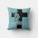Throw pillow with the words Philippians 4:13 "I Can Do All Things through Christ who strengthens me" in black on a blue background. Matching back. Add your own message to the back or leave blank. View all of our decor in our Zazzle store!