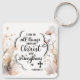 Keychain with inspirational quote Christian scripture depicts simple earth tone watercolor wildflowers framing an encouraging Bible Verse Philippians 4:13, "I can do all things through Christ who strengthens me."