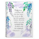 Inspirational floral notebook, journal depicts a beautiful watercolor lavender and blue wisteria design. It features a portion of Bible Verse Philippians 4:6-7, "Pray about everything; tell God your needs... If you do this, you will experience GOD'S PEACE which is far more wonderful than the human mind can understand."