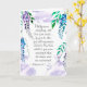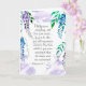 Inspirational floral greeting card depicts a beautiful watercolor lavender and blue wisteria design. It features a portion of Bible Verse Philippians 4:6-7, "Pray about everything; tell God your needs... If you do this, you will experience GOD'S PEACE which is far more wonderful than the human mind can understand."~