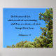 Blue sky above green trees, with Bible Verse of comfort: "And the peace of God, which passeth all understanding, shall keep your hearts and minds through Christ Jesus. Philippians 4:7"