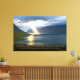 Image of a beautiful sun ray bursting through clouds, over a lake area with a wonderful background of green hills with blue water and sky from a shoreline setting that displays God's Word in gold-colored letters.