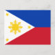 The Philippines flag has two horizontal bands in blue and red, with a white triangle at the left. The triangle has a golden sun surrounded by three stars. It was adopted in 1898, and has a 1:2 ratio.