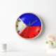 Wall clock flag of the Philippines design. You can customise this clock with any text of your choice. Should you require any help with customising then contact us through the link on this page. Philippines flag design wall clock.