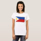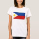 The front of this t-shirt boldly displays the Filipino flag with its distinctive yellow motifs in a white triangle with blue and red bands to the right. This is matched at the back by an attractive map of Philippines.