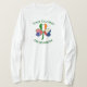 Personalized long sleeve women's t-shirt features a shamrock with the flags of Philippines, Ireland and United States of America (USA). A different flag in each leaf. The words, THREE CULTURES, appear above the shamrock. ONE YOURNAME appears below. Words are in dark green, Celtic style, circular letters. Add your name in the appropriate spot for a personalized look. To create a customized gift, just add someone else's name. Design created to celebrate holidays enjoyed by Pinoy and Pinay, as well as St. Patrick's Day and the 4th of July.