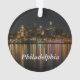 This is the beautiful skyline of the city of Philadelphia, taken at night from across the Delaware River at the Camden waterfront. The architecture of the skyscrapers and buildings of Philly are on display in this photo. Center City, the downtown area of Philadelphia, is the focus of this photograph. The lights of the city cast colorful reflections on the water.