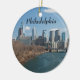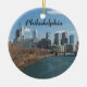This is the beautiful skyline of the city of Philadelphia, taken from a bridge crossing the Schuylkill River. The architecture of the skyscrapers and buildings of Philly are on display in this photo. Center City, the downtown area of Philadelphia, is the focus of this photograph. Puffy clouds hang overhead in the winter sky.