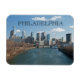 This is the beautiful skyline of the city of Philadelphia, taken from a bridge crossing the Schuylkill River. The architecture of the skyscrapers and buildings of Philly are on display in this photo. Center City, the downtown area of Philadelphia, is the focus of this photograph. Puffy clouds hang overhead in the winter sky.