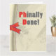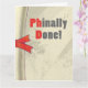 You've worked hard, studied hard and have finally done it! You're or someone you know is graduating with their PhD. Phinally D/b>one Cards are a perfect way to say Congratulations or to send out an announcement of your accomplishment. Our bold typographical design features the words, Phinally Done in gray with the PhD highlighted in red against a yellow parchment with a diploma scroll framing the left side.