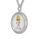 I chose gold plated so that the metal would not react with my skin oils and perspiration. But, I changed the necklace from the gold plated one to a sterling silver. My skin cells will tarnish the silver. But it will not look as bad if some portion of the gold plated necklace somehow became compromised. Zazzle did a find job turning the picture into a pendant for me. As you can see, the colors and the printing of the final product, match the preview. The picture I took is not very clear. But I am pleased with the product I received.